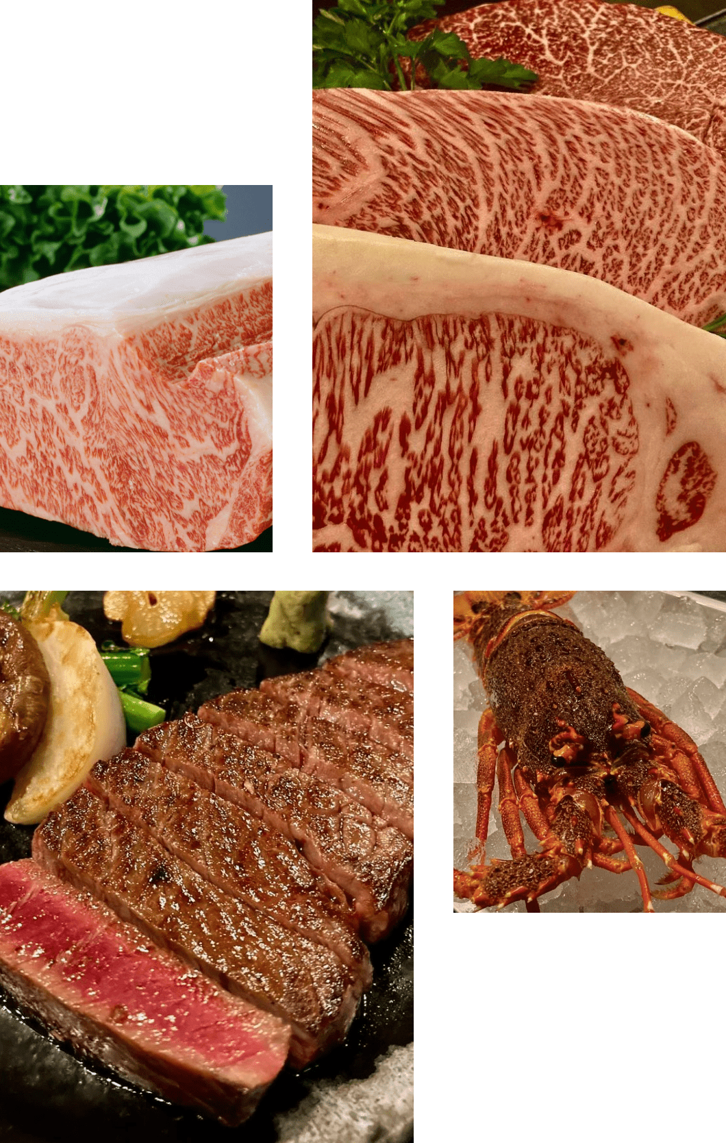 最高品質との呼び名が高い、岩手県前沢産A5ステーキ(小形牧場産)、新鮮なシーフードや、